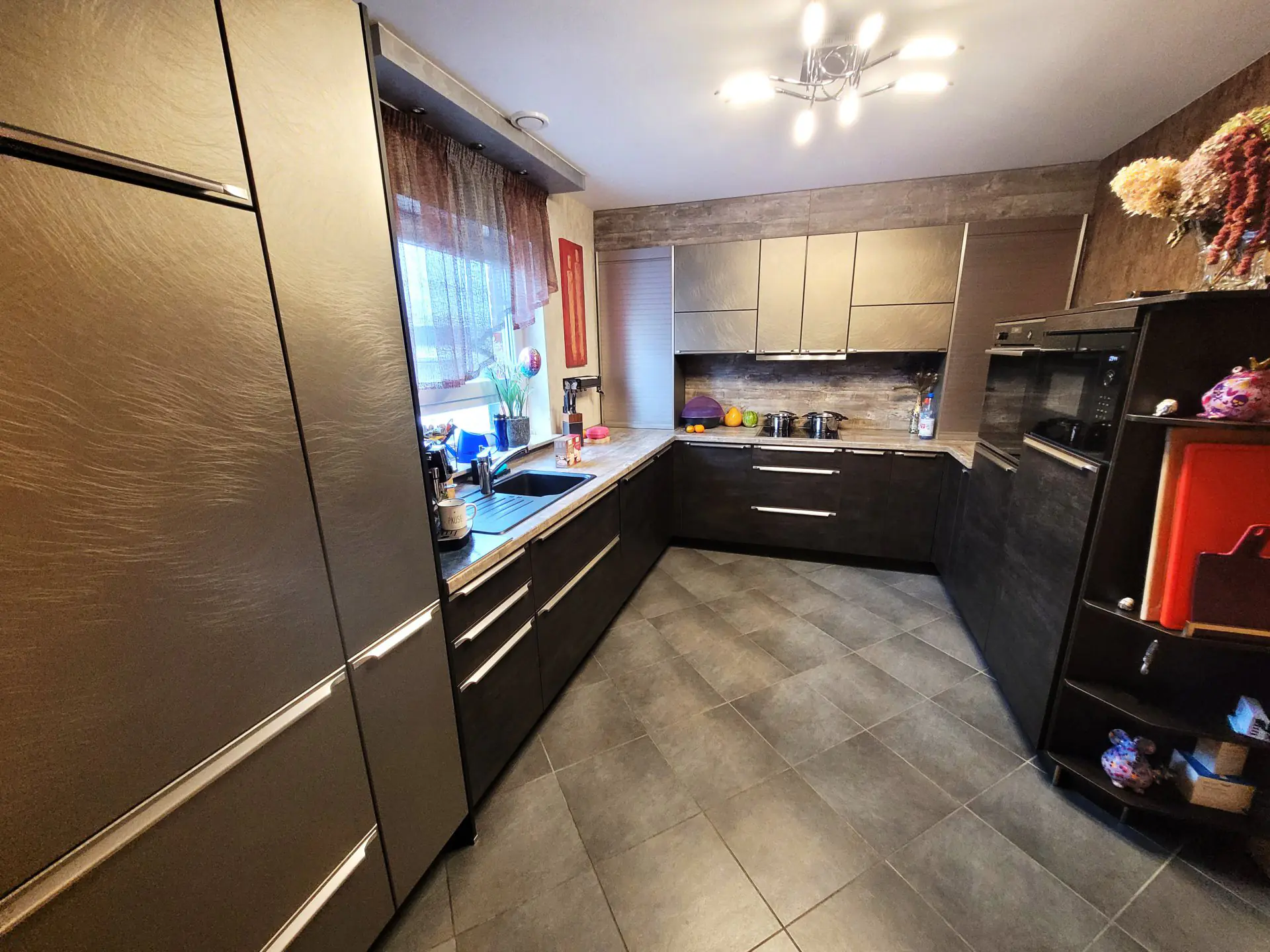 Eine noch junge, hochwertige Einbauküche lädt zum gemeinsamen Kochen und Bewirten von Familie und Freunden ein.