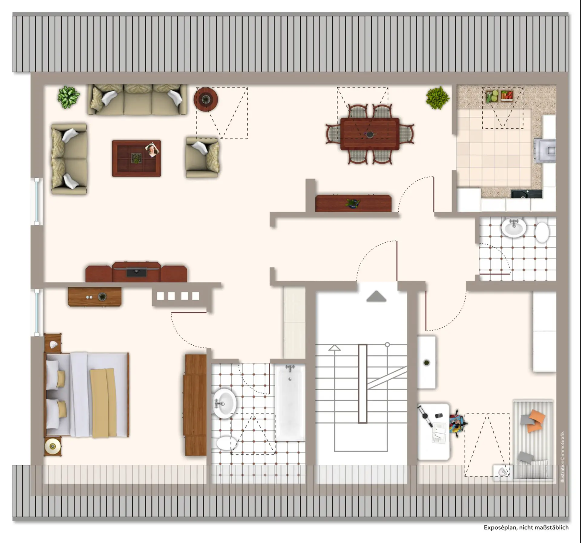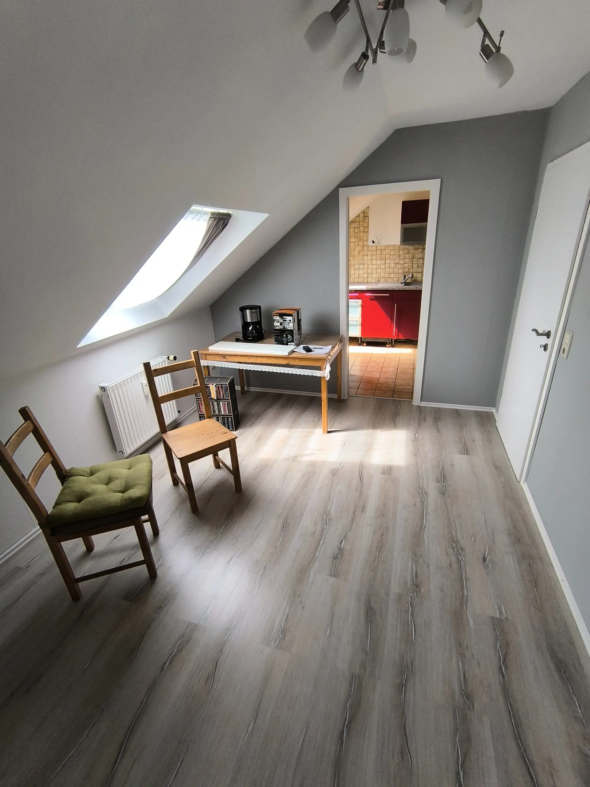 Die Wohnung befindet sich im Dachgeschoss des Hauses und verfügt über bis zu 2 Schlafzimmer, ein Gäste-WC, Tageslichtbad mit Badewanne und Duschaufsatz aus Glas. Der Wohnbereich geht in den Essbereich und die Küche über, ist sehr hell und freundlich gestaltet. Die Einbauküche wurde erst 2024 erneuert und die Nutzung ist im Mietpreis enthalten. Die Wohnung verfügt nicht über keinen Balkon oder Loggia. Der Vorgarten wurde vom letzten Mieter gepflegt und genutzt. Auch der neue Mieter hat diese Rechte und Pflichten. Haustiere sind nicht erwünscht und die Vermietung soll an ruhige Mieter erfolgen, die ein soziales Miteinander zu schätzen wissen.
